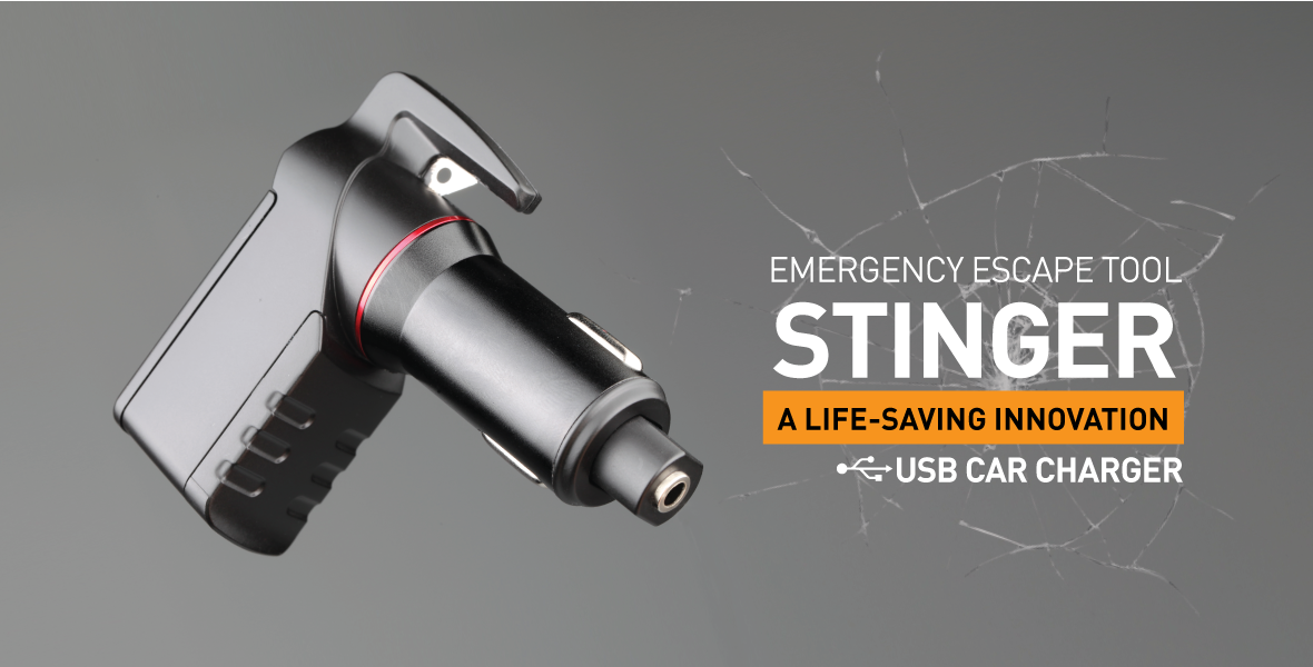 Learn MoreThe Stinger is the first emergency tool ever built with a spring-loaded glass breaker integrated into a tiny USB car charger. Our patented technology makes your escape tool easy to reach whenever you need it.